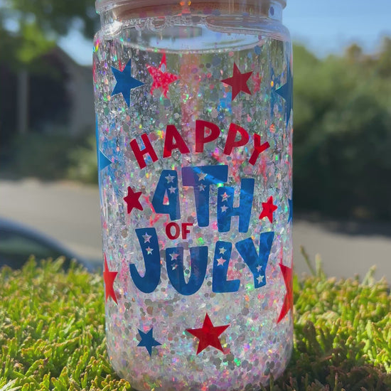 Raise a toast to freedom with a tumbler that shines as bright as the fireworks! Perfect for backyard BBQs, beach bonfires, and festive celebrations, this 16oz custom tumbler is designed to keep your drinks refreshingly cool while showcasing your patriotic spirit. Featuring a dazzling red and blue star-spangled design, it also glimmers with white glitter and a splash of silver holographic glitter inside—bringing extra sparkle to every sip. Whether you’re enjoying iced lemonade or a classic American cocktail, this tumbler turns every drink into a celebration.