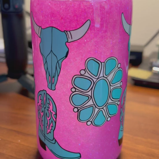 Wrapped with rugged-chic artwork featuring cowboy boots, bolo ties, and bold bull skulls, this design is a dazzling blend of western grit and glam goddess energy. Whether you're wrangling spreadsheets or heading to the next rodeo market, this tumbler’s your perfect partner in sparkle.