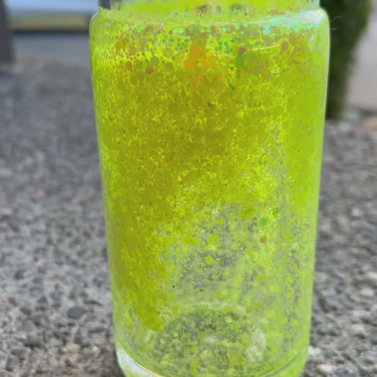 Sunkissed Shimmer is pure golden radiance in motion, a 16oz glitter snowglobe tumbler that sparkles like a burst of summer sunlight. Radiant, lively, and full of energy, its crystal-clear liquid bursts to life with vivid yellow glitter, shimmering like scattered sunshine in motion.